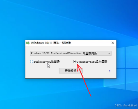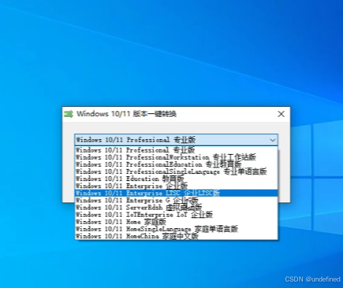 2、点击界面上的下拉列表,里面包含了所有支持转换的 Windows 版本,如专业版、家庭版、企业版、教育版等,根据自己的需求选择要转换的版本即可。