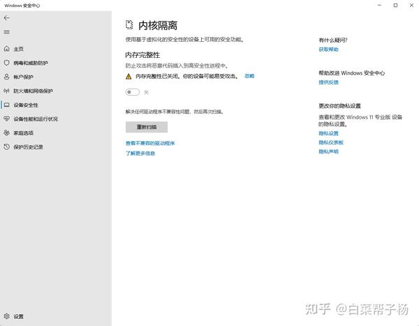 ——来自微软官方网站,点击查看核心隔离 (microsoft.com)