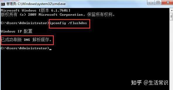步骤3。再次输入命令“ipconfig /flushdns”。该命令的主要作用是清除DNS解析缓存,如下图所示: