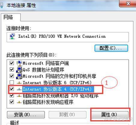 步骤3.在“网络连接属性”窗口,找到Internet协议版本4(TCP/IPv4),然后点击“属性”,如下图所示。