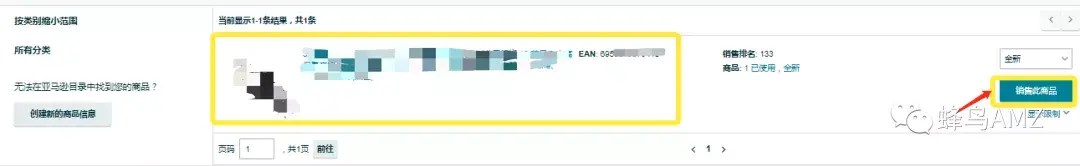 第三步:搜索结果就会显示已经在亚马逊上销售的这个链接,点击销售此商品。