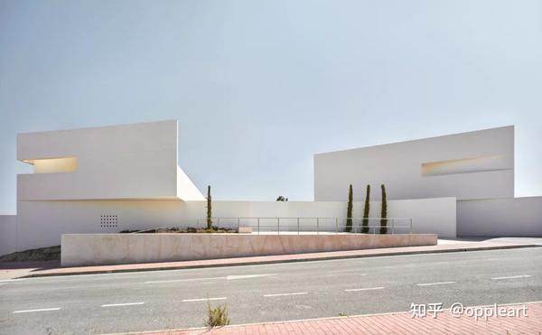 “白”在这里指的不是颜色,而是对于形体处理,那种类似于迈耶、西扎的建筑,以及一些推崇极简主义的大师,往往会有通白建筑的出现,但颜色不是重点,主要在于尽可能削减一些多余装饰在立面的表现,力求建筑体块的突显,整体建筑的简洁、纯粹。