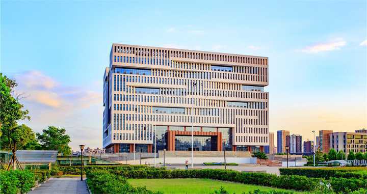 南湖图书馆命名为心至楼。图书馆主体立于高台之上,图书馆主入口通过对传统斗拱、排架的拆分和重组,以钢结构构架演绎传统木构的形态。东西立面覆以木色金属板,并将校园历史文化通过抽象篆书文字镂刻之上。将楚文化进行抽象和演绎,使历史底蕴在新建筑上得以延续和传承 [127]。
