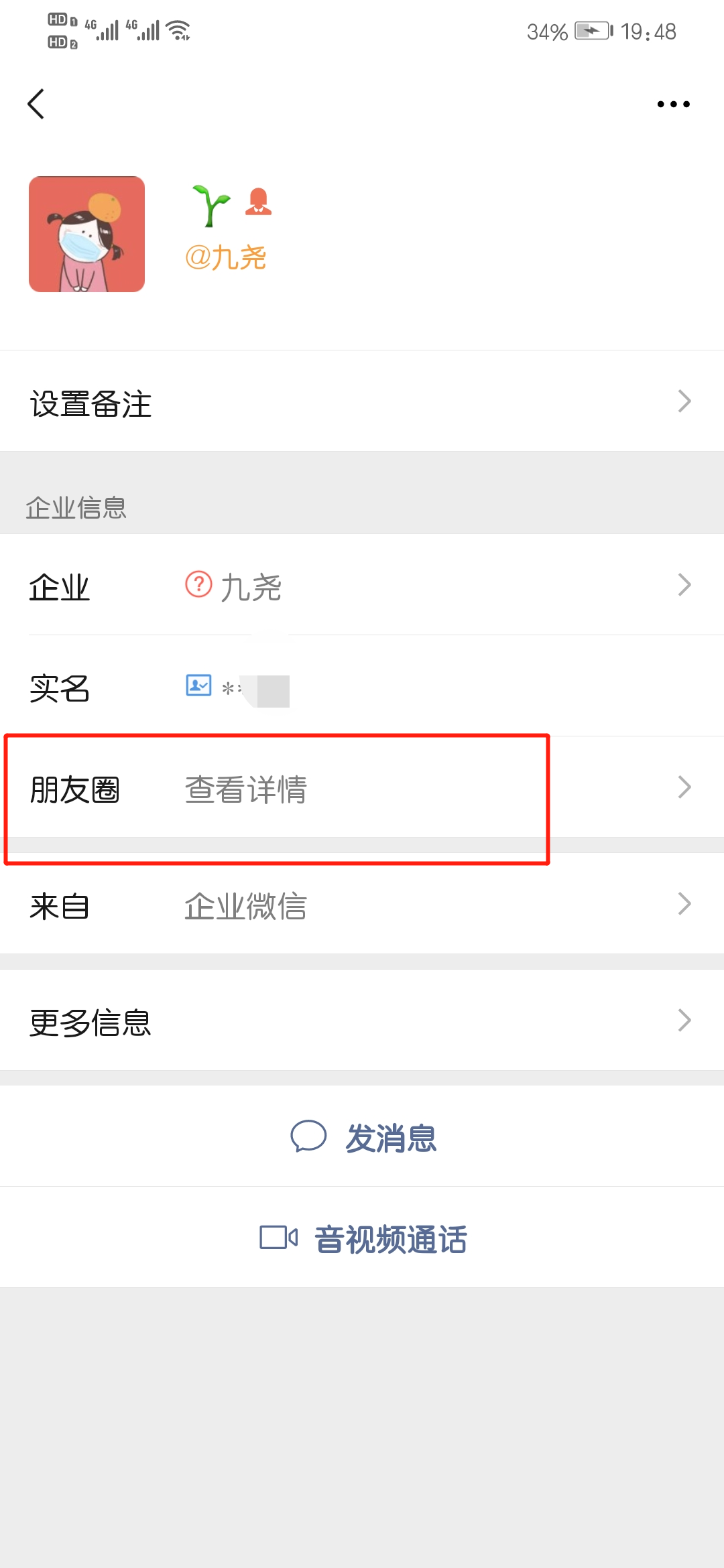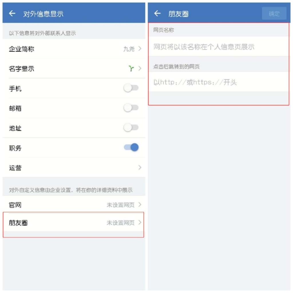 然后只需要将朋友圈链接复制到对外信息的朋友圈入口中,客户就可以在员工的对外资料中查看全部朋友圈了。