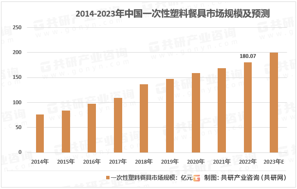2014-2023年中国一次性塑料餐具市场规模及预测