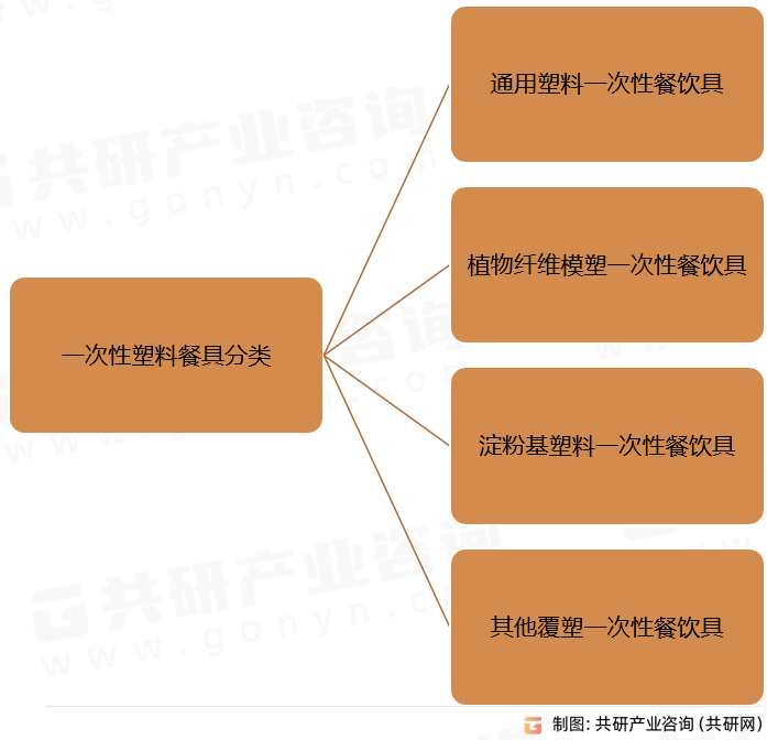 一次性塑料餐具是指树脂或其他热塑性材料通过热塑成型加工得到的一次性餐饮具,按照其材质可以分为通用塑料一次性餐饮具、植物纤维模塑一次性餐饮具、淀粉基塑料一次性餐饮具、其他覆塑一次性餐饮具。