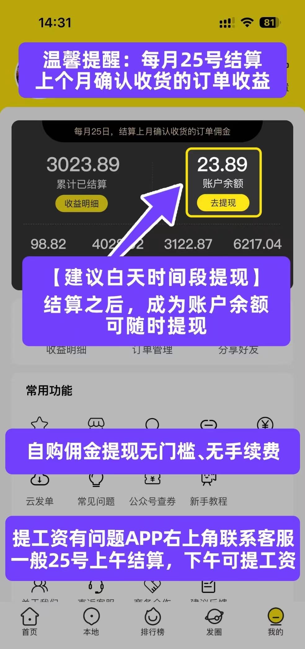 2、返利渠道通畅,提现快速无阻
