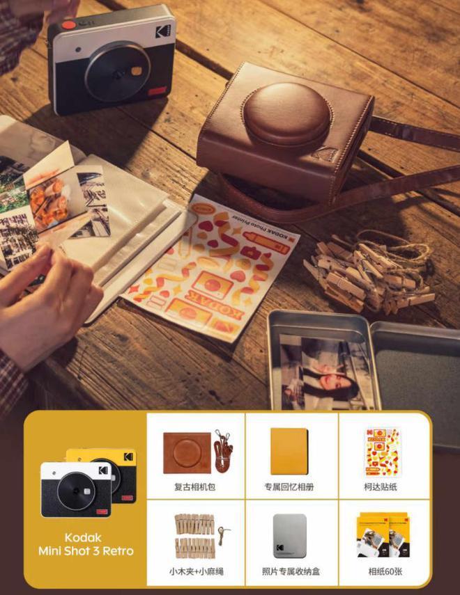 除了拍摄和打印功能外,Mini Shot 3 Retro还配备了定时自拍和三脚架支持等功能,为拍摄增添了不少便利。相纸采用了防水防尘的覆膜技术,让保存更加无忧。而且,柯达品牌的口碑和专业影像技术也让这款相机在市场上具有较高的认可度和信任度。