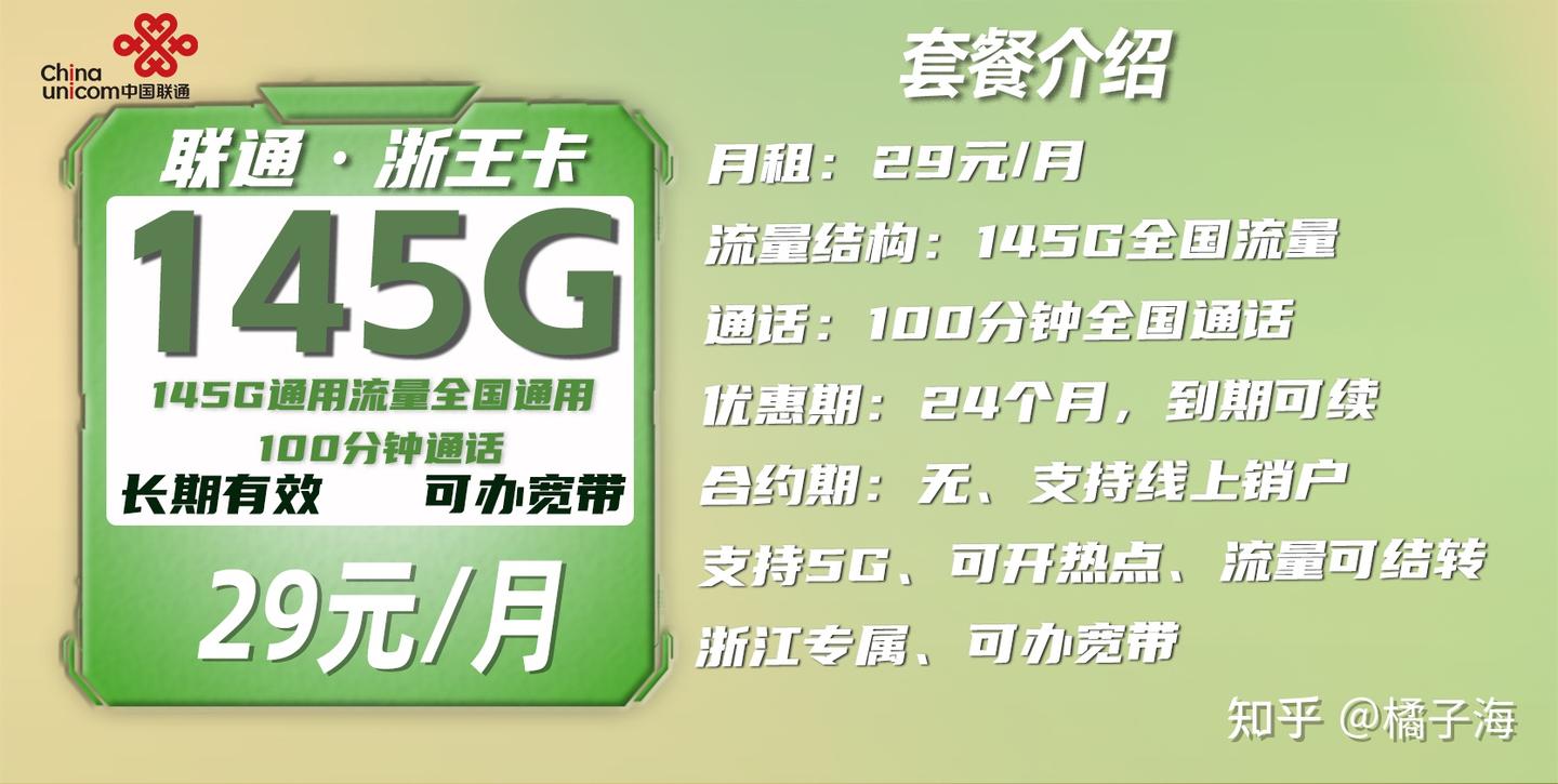 目前可以叠加宽带在流量卡上的套餐,仅浙江联通这款145G套餐满足,而且和广电同款的流量用不完能转结到次月。