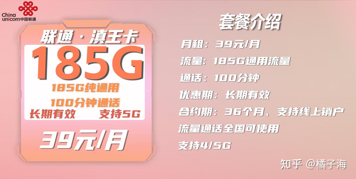 叠加套餐:参与入网存后每月赠送10元话费用于抵扣月租(赠送三年)综上:联通滇王套餐首月全价全量,2-36月39月租包185G全国通用流量+100分钟通话,往后每月49包185G全国通用流量+100分钟通话。
