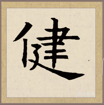 “健”是一个形声字,左边的“人(亻)”表示字的意思与人有关,右边的“建”表示字的读音与它接近。