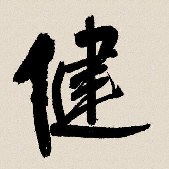 “健”的本义是“强壮”,比如“健壮、强健、矫健、雄健”。“强壮”往往意味着身体健康,所以“健”也可以表示“健壮、健康”,例如杜甫《兵车行》:“纵有健妇把锄犁,禾生陇亩无东西。”