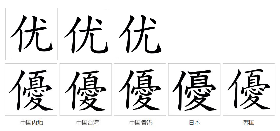 “优”繁体写作“優”,是形声字。字形以“人”为形旁,表示该字的本义与人有关;“憂(忧的繁体)”作声旁,表示读音与此接近。汉字简化时将声旁替换为“尤”。