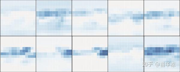 别忘了,我们前面有10个卷积核,也就是卷积神经网络会提取10个不同特征,用来综合分析。仅靠上面这张图片的特征确实分辨不出来,但是10个不同的特征放在一起,咱们的卷积神经网络就能够分辨出来了。如下图所示,我们看一下在最后一步,这10个特征图都是什么样子。