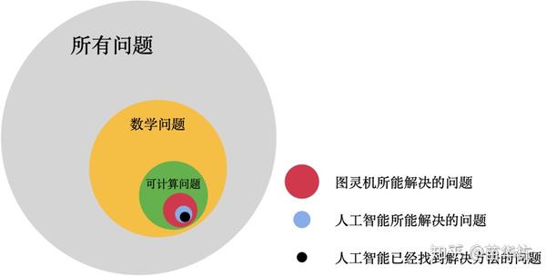 所以,人工智能所能解决的问题真的只是世界上问题很小的一部分。既然人们能够相信不能造出永动机,那么我们也应该相信人工智能在你有生之年是不可能超越图灵机的理论极限的。什么超人工智能,大家现在就暂当做科幻小说看一看就可以了。因为世界上还没有,而且也没有人在做非图灵机的计算机。