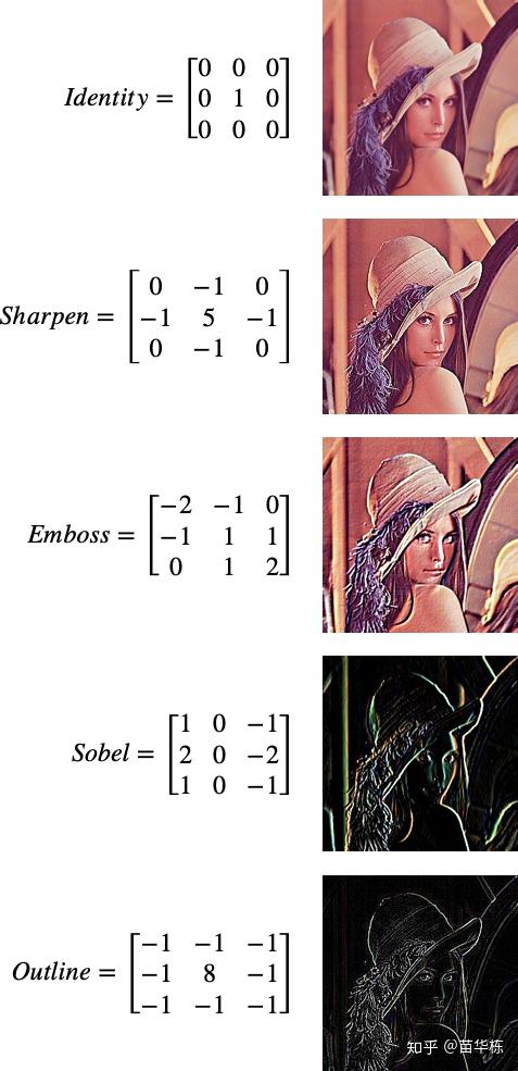 言归正传,挑选了几种常用的卷积核效果,如下图所示。
