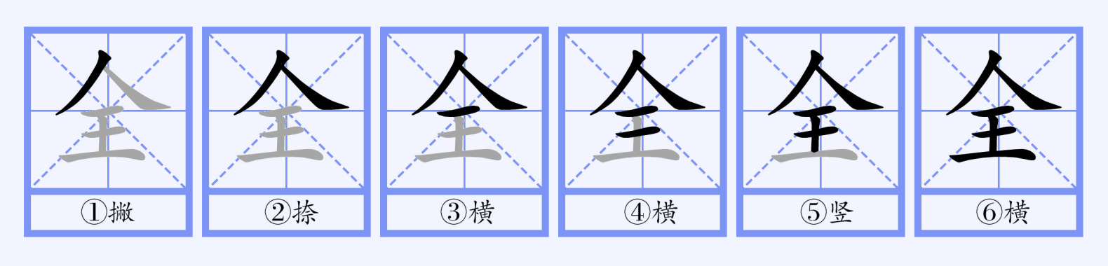 - 撇、捺、横、横、竖、横