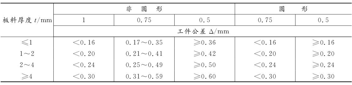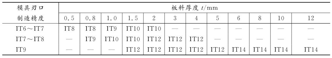 表 2-5 模具刃口制造精度与冲裁件精度的对应关系