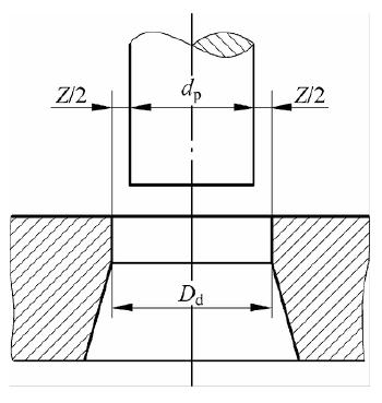 冲裁间隙是指冲裁模具中凸模与凹模刃口之间的间隙。凸模与凹模之间单侧的间隙称为单面间隙,用 Z/2 表示;两侧间隙之和称为双面间隙,用 Z 表示,如图 2-5 所示。