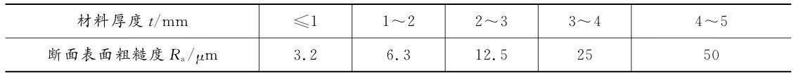 表 2-2 一般冲裁件剪切面表面粗糙度