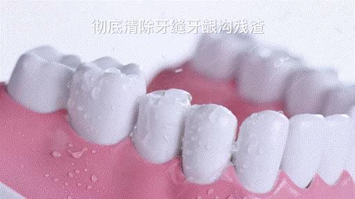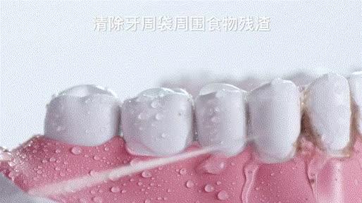 对于牙缝、牙龈沟等普通牙刷难以清洁到位的位置,也能实现高效清洁,防止牙菌斑滋生。为了让大家直观地看到它的作用,这里附上它对于特定位置的冲洗效果图。