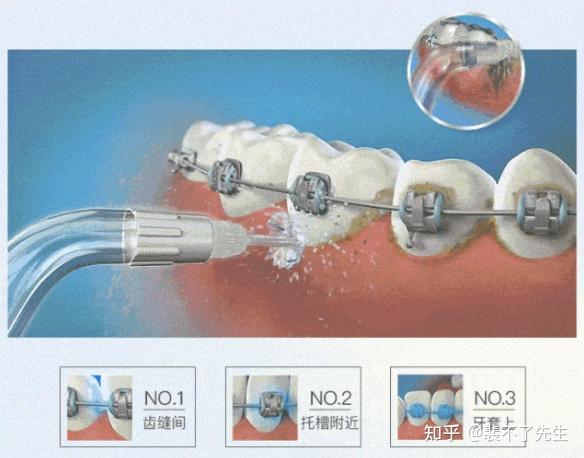 https://www.zhihu.com/video/1575796003441209344下图为冲洗牙龈沟附近脏东西的工作示意图: