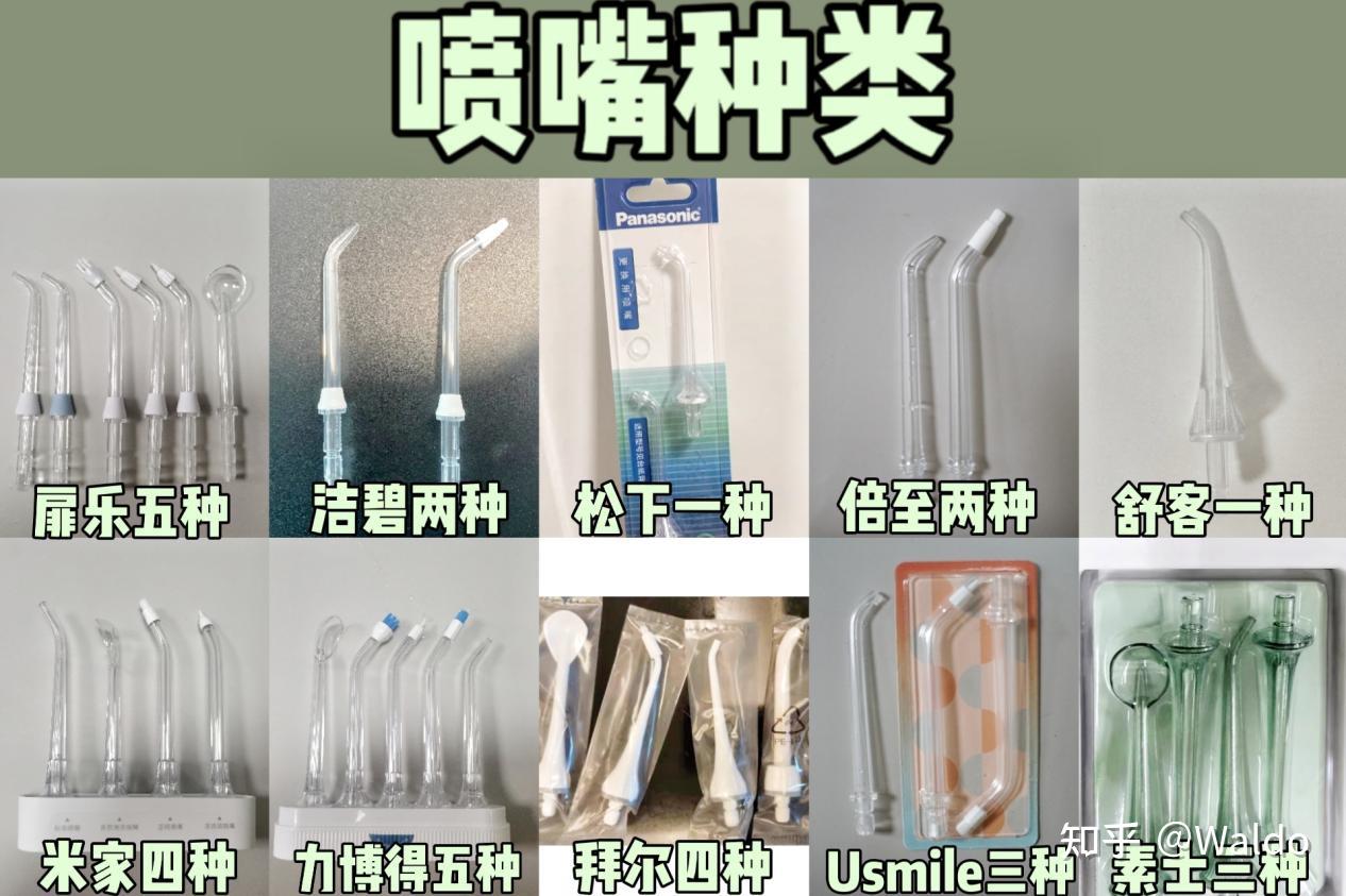 我们的口腔是动态变化的,当我们牙龈发炎、智齿发炎、蛀牙等各种问题出现时,我们要能找到能匹配当下口腔状况的喷嘴、档位力度等,所以要选择档位多、喷嘴多、力度跨度范围广的。本节重点关注的喷嘴的种类。我们最好选择喷嘴种类在4个以上的,能满足的清洁场景需求更多。下面是各品牌喷嘴种类的统计。