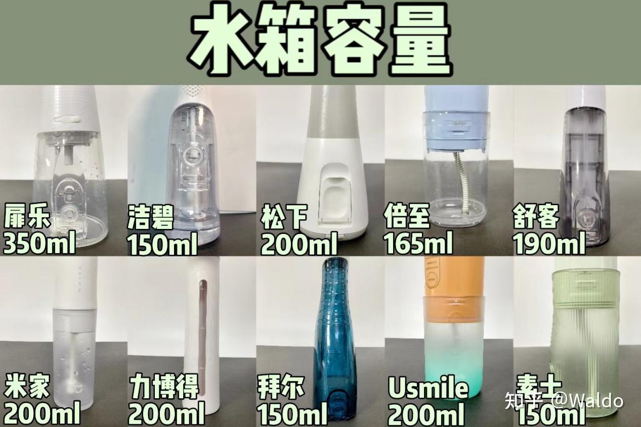 松下、米家、力博得、Usmile、舒客的容量达到了200ml,也可满足日常普通场景清洁,但是应对耗时较久的深度清洁,就需要再次加水了。