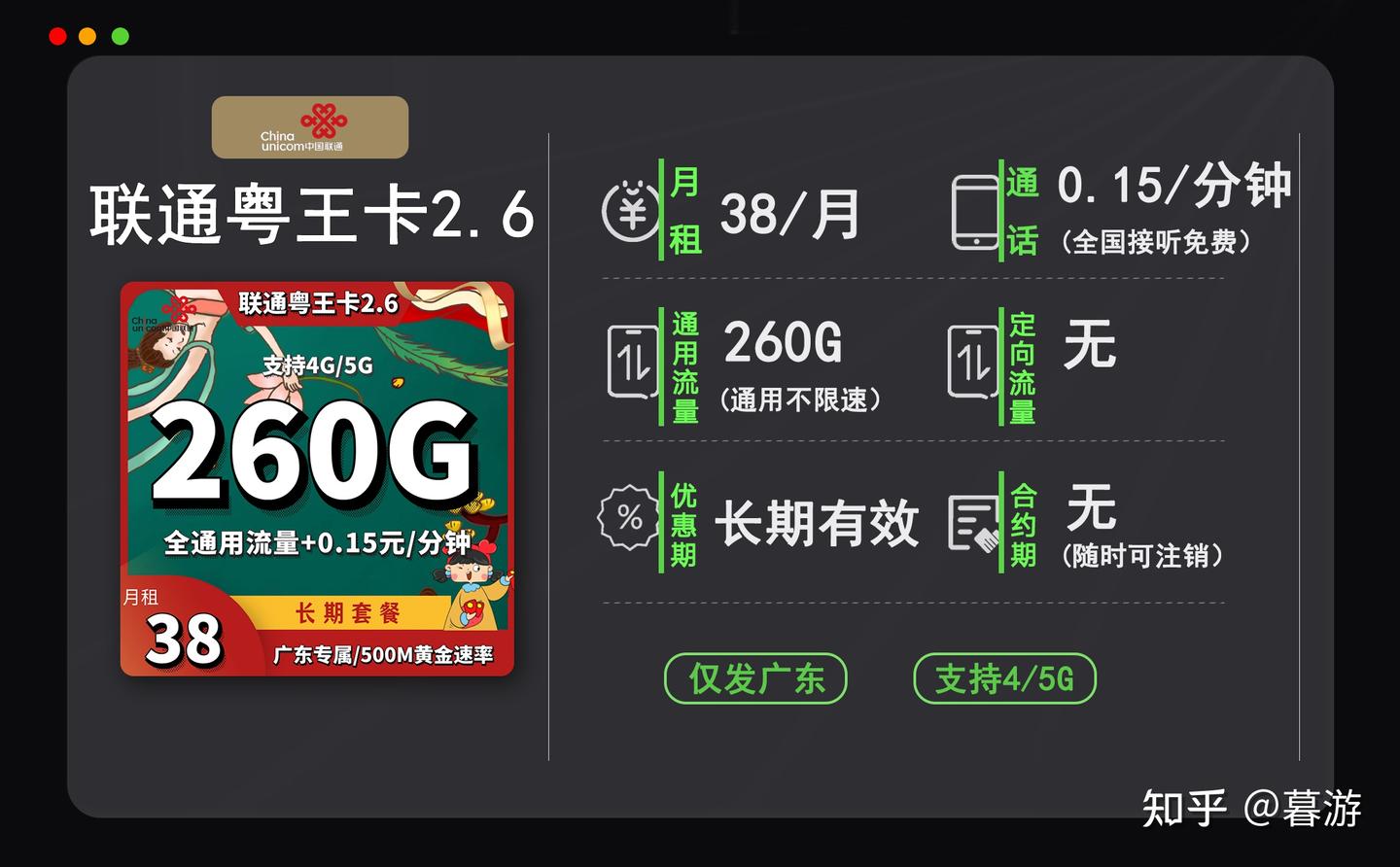 讲真,联通真的很久没有推出过180G+的流量套餐了,像别说这样260G的顶配款了,这款粤王卡不光流量给得实在,优惠还能长期有效,最关键的是没有合约期绑定,用着完全没束缚。