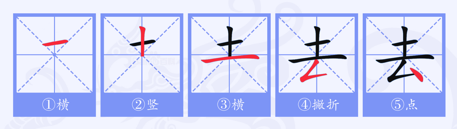 去(拼音:qù)为汉语一级通用规范汉字(常用字) [6]。此字始见于商代甲骨文,其古字形一般认为像人离开住处的样子,本义指离开、离去。后用为使动,表示使离开、使离去。“去”又由离开引申为距离。“去”也指过去的时间,作修饰语。在现代汉语中,“去”也常用于表示前往。去又指汉语四声之一,作名词用。 [15-16]