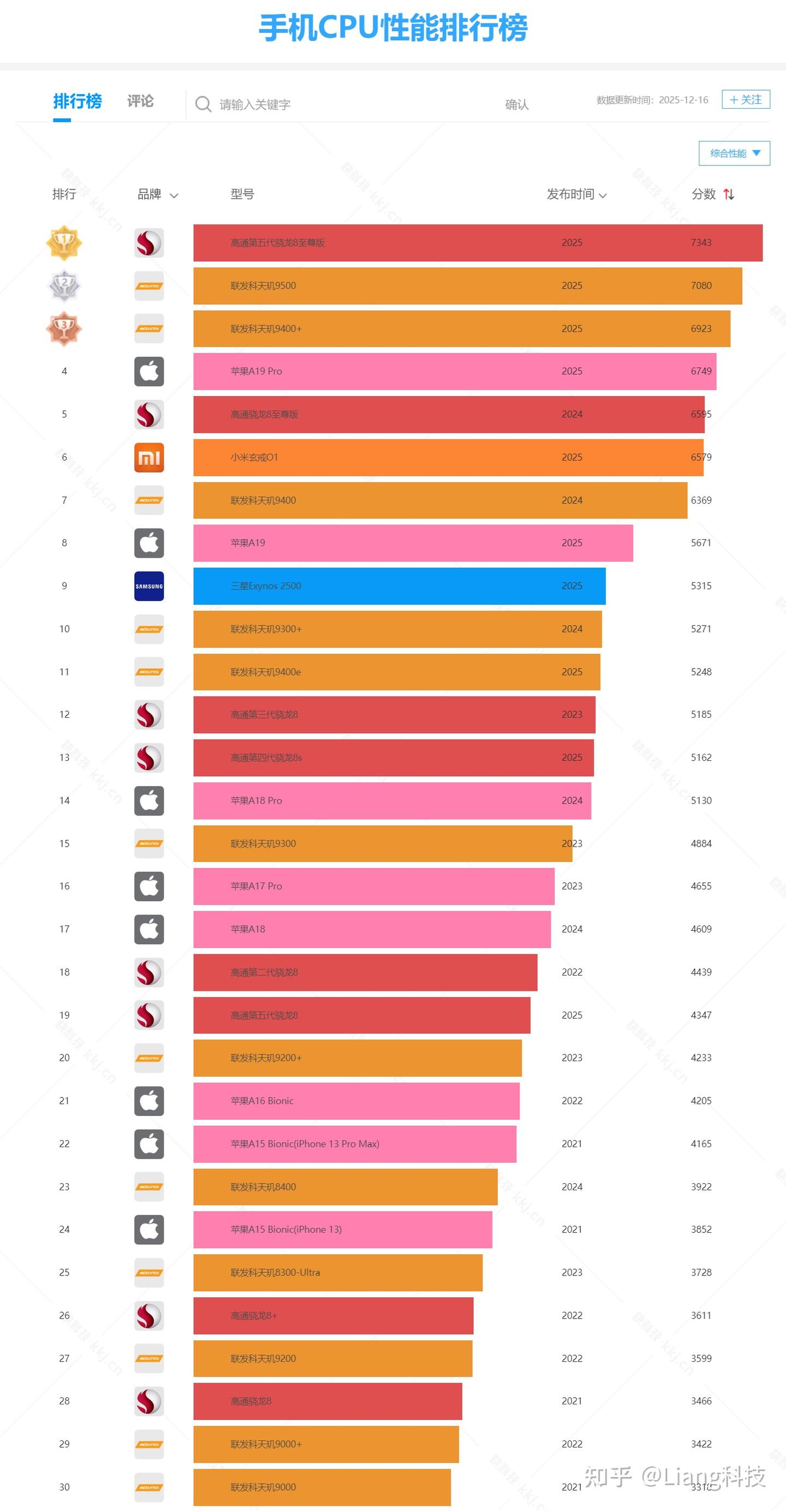 从这张图来看,排名越靠前的手机芯片,其游戏性能越强,手机的流畅度和反应能力也更强。