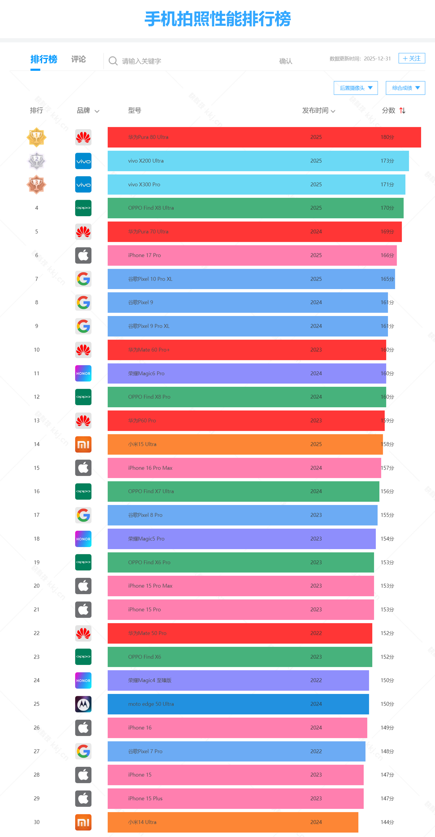 (具体的手机综合照相性能排行可以参考快科技评测的数据,没上榜的一些旗舰手机不代表拍照能力弱,只是没有送测或者其他原因,仅做参考哈)