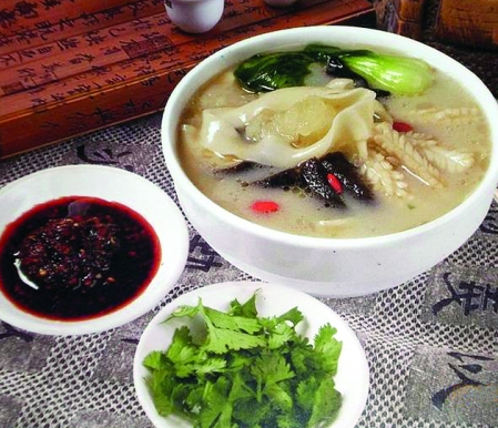 郑州烩面选用上好的鲜羊肉,羊骨,经浸泡,用大火将骨头和肉一起煮成白汤,另用面粉和成软面,经反复揉搓,用手工拉成宽窄不同、粗细不等的条状下锅,锅内放原汤,放上羊肉,配上黄花菜、木耳、粉条,用餐时,配上香菜、辣椒油、糖蒜等小碟,味道更鲜。 [411] | ||
