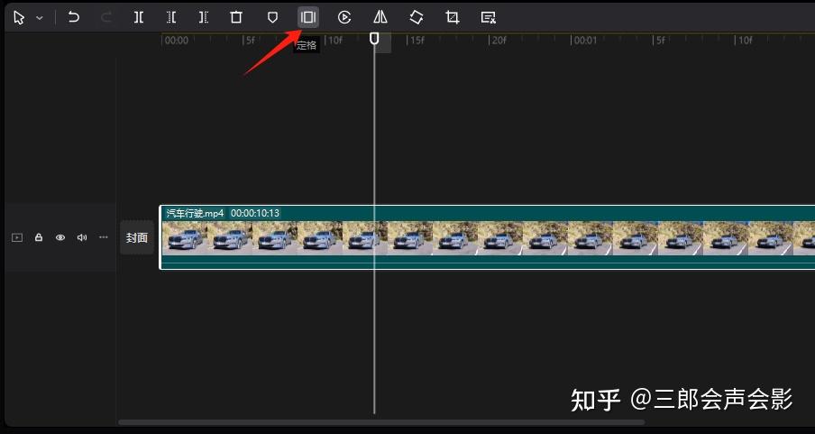 步骤三,单击常用工具栏中的“定格”图标,如下图所示,这样就可以实现定格的效果;