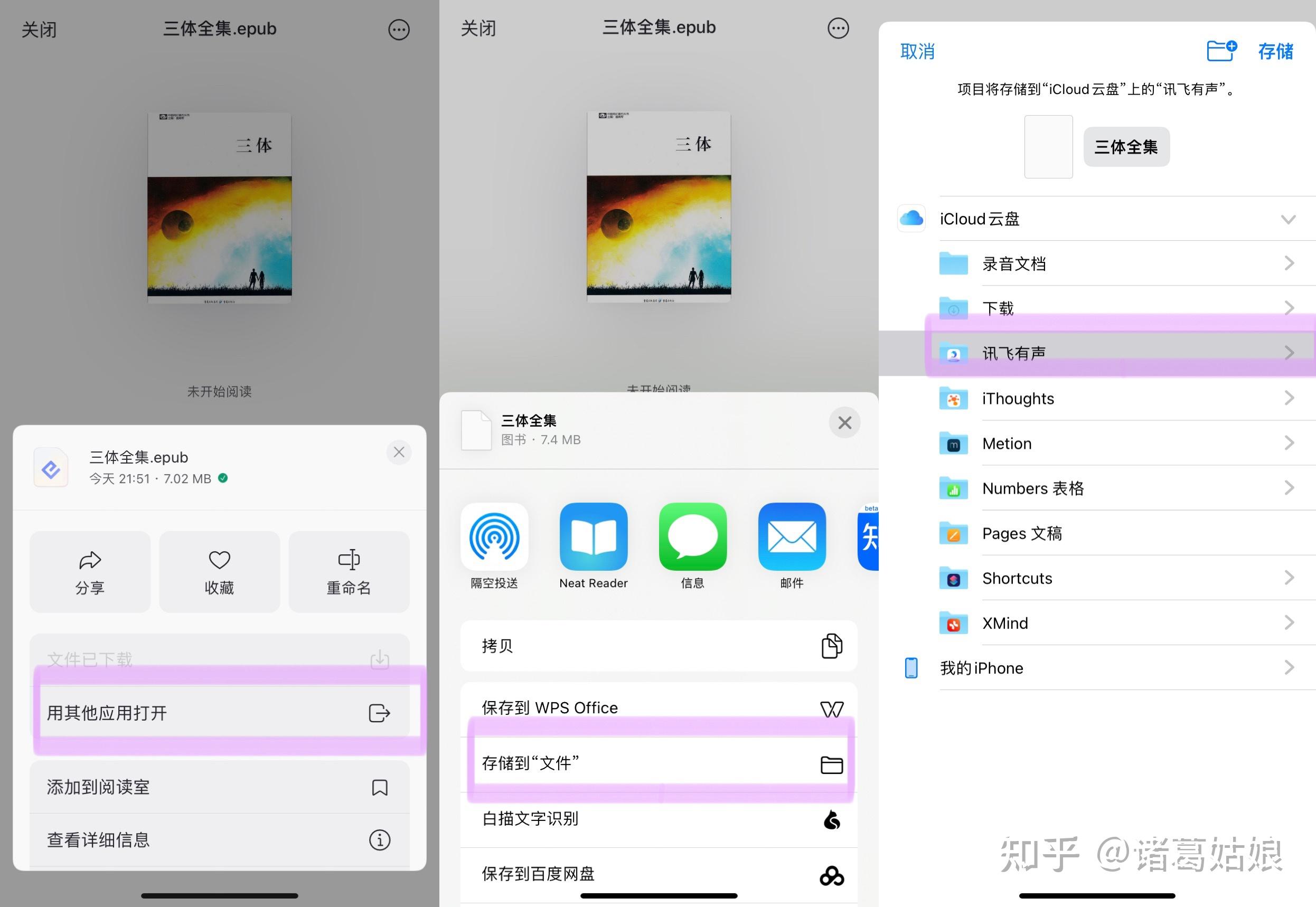 图3,手动存入「文件」App的过程,之后就可以在「文件」App中搜索到这个文件来。