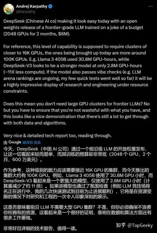 说到这里,不得不提出来一个我个人认为很有分量, 并且能够客观冷静的表述中外AI差距的人物了。DeepSeek已经火过两次的V2以及V3都不得不倒逼国内大模型价格的下降。