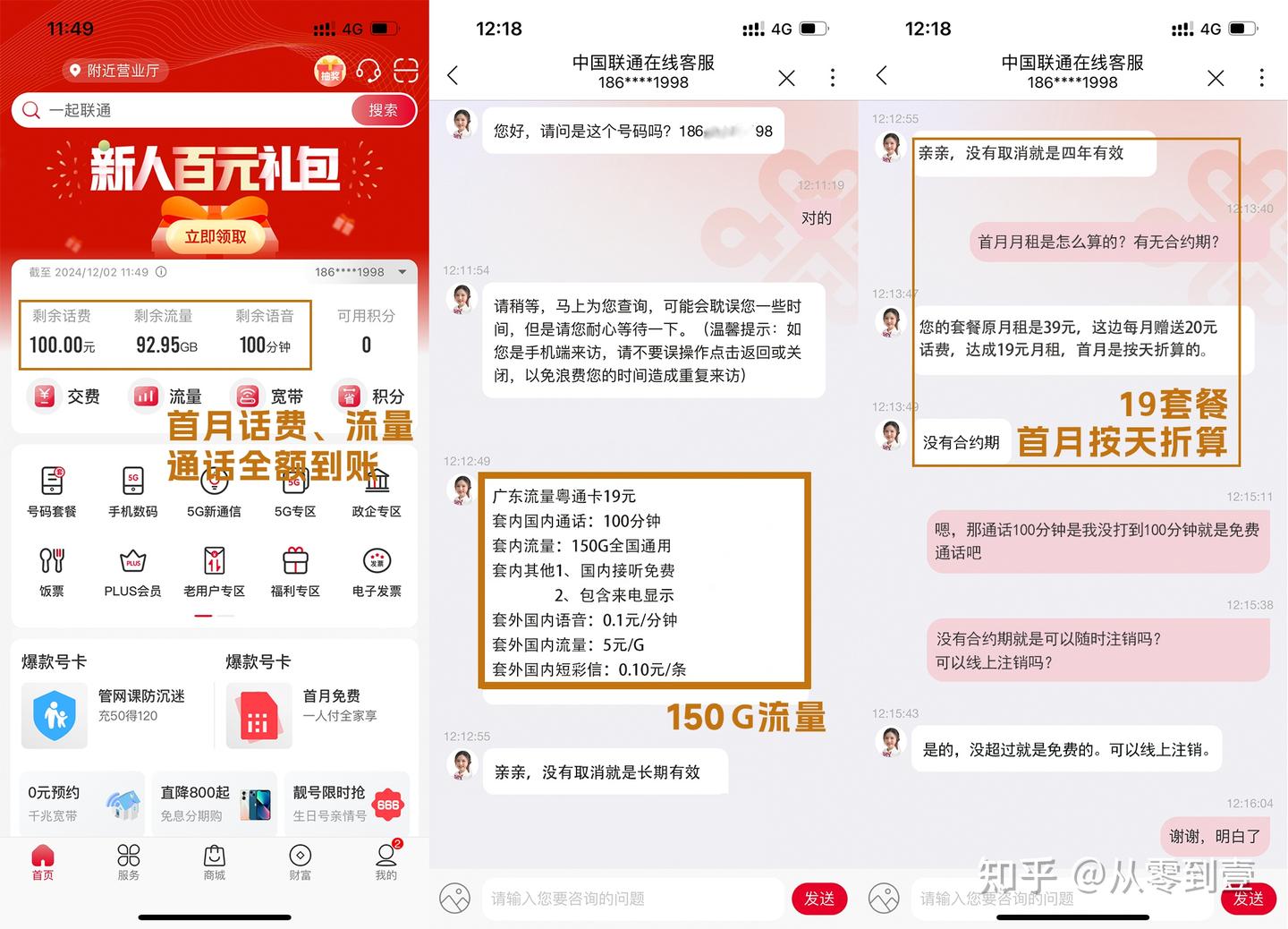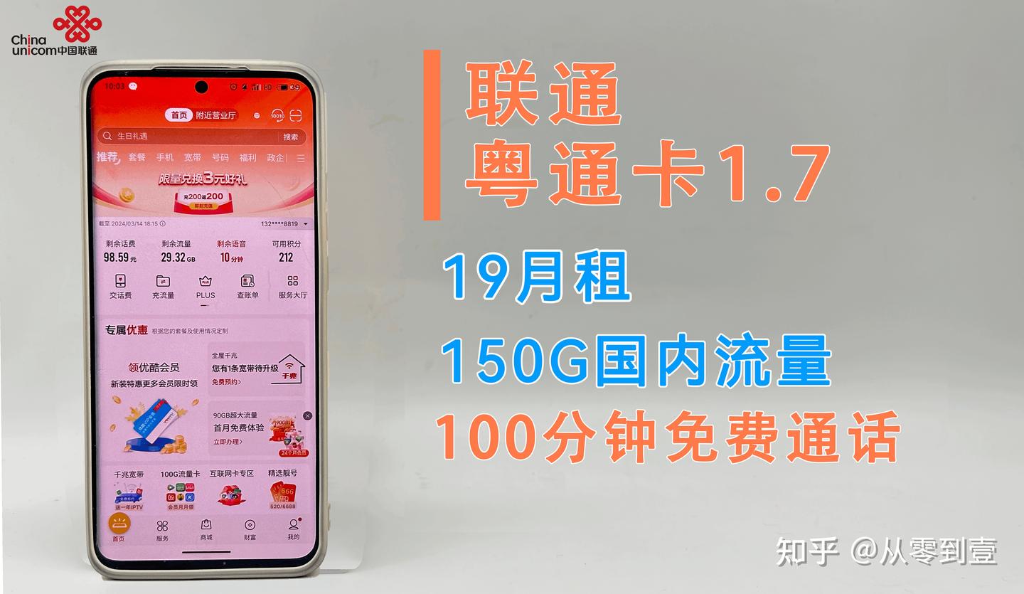 总结:联通粤通1.7,前四个月每月19包150G全国通用流量+100分钟免费通话。第五月后29月租包150G全国通用流量+100分钟免费通话。