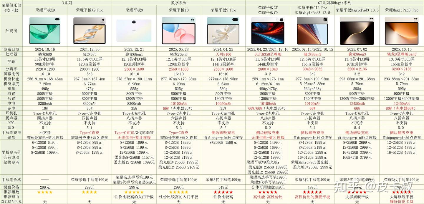 近期更新:已更新10月16日发布的OPPO Pad5。已更新10月15日发布的荣耀MagicPad3 Pro。已更新9月25日发布的小米平板8系列。已更新9月4日发布的华为MatePad Mini。