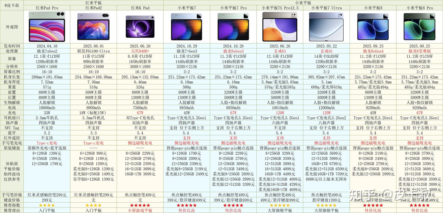 目前主要是小米平板8系列,相比上一代主要是处理器和电池常规升级。