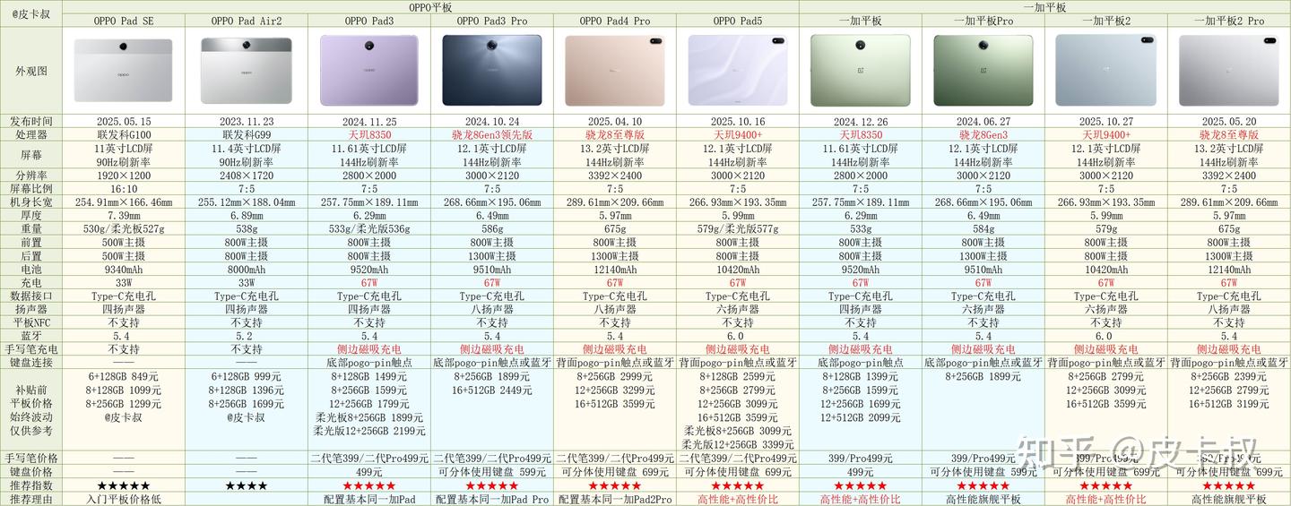 OPPO平板目前在售的主要有以下几款平板。一加平板基本上都是OPPO的套娃机型。