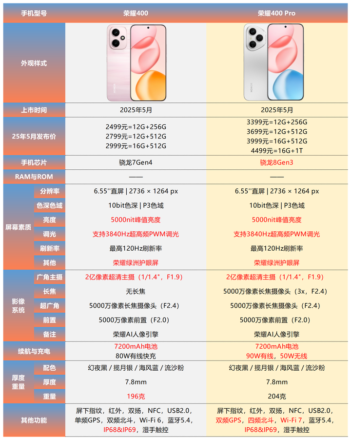 选购建议:荣耀Magic7 Pro在影像、屏幕分辨率、3D人脸识别、续航能力等方面相较标准版均有提升,如果对影像表现比较看重的话,那Pro版推荐度比标准版更高。毕竟多了一颗2亿像素1/1.4英寸超大底的长焦,综合影像表现提升还是非常明显的。如果不介意机身厚重些的话,Pro版的推荐度也是高的。