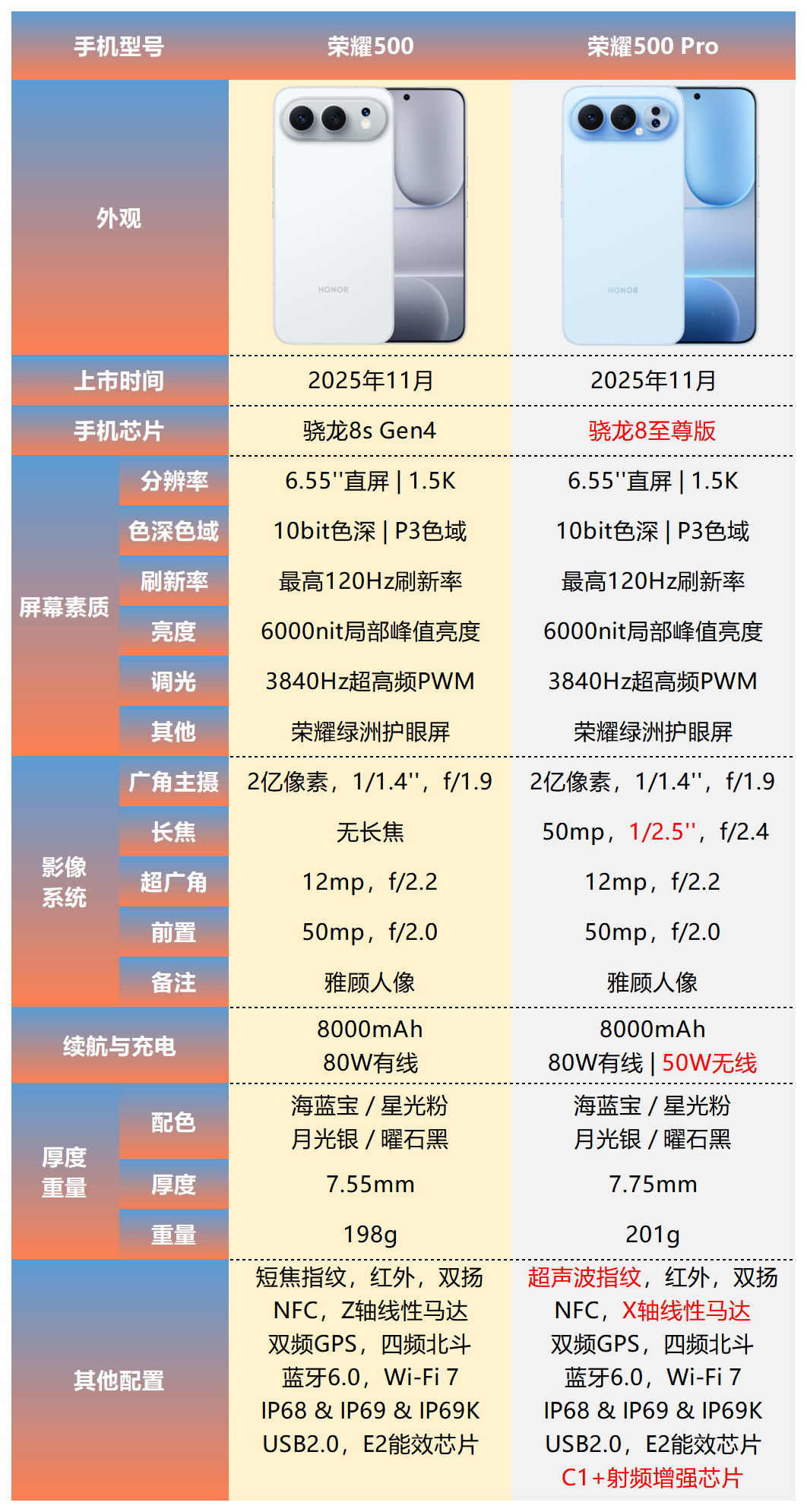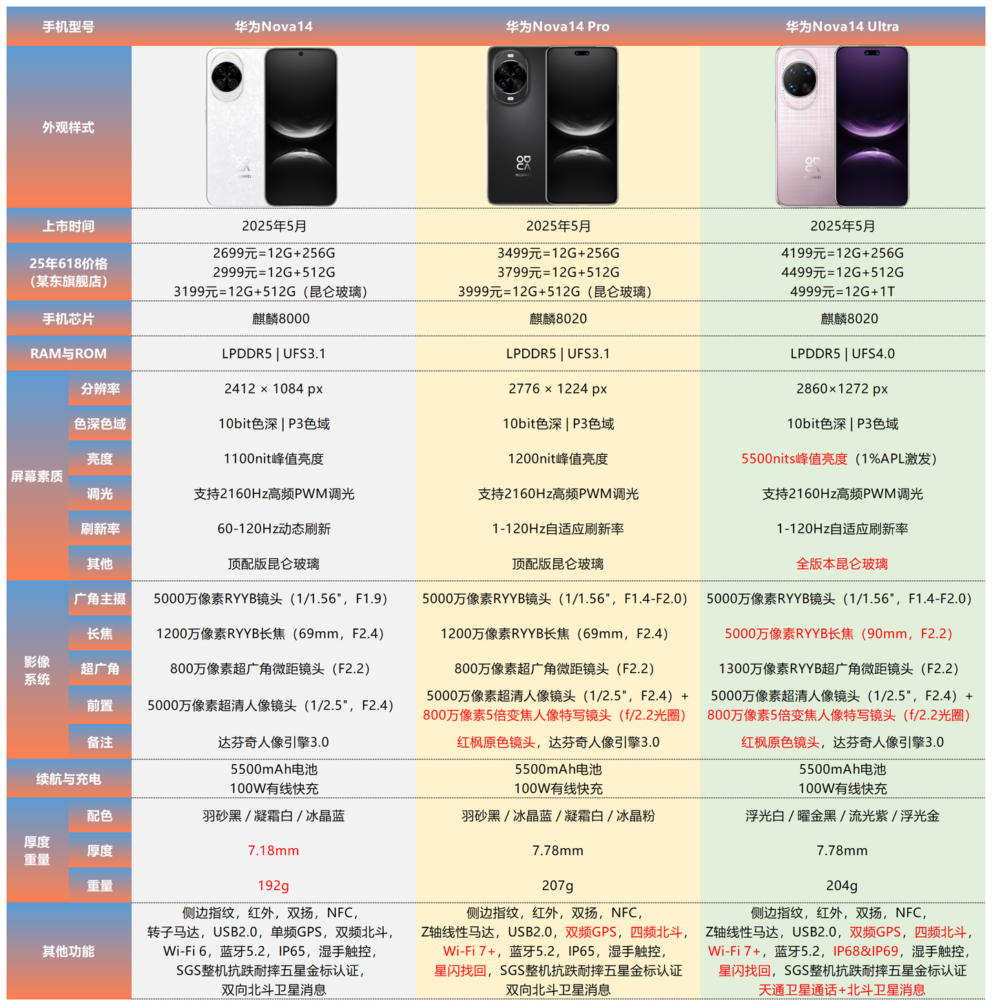 Pro与Ultra区别:主摄和双长焦均有所升级;全新LUMO影像+丹霞原彩镜头;附加功能也更加齐全,综合而言,影像效果比Pro提升比较明显。其他方面区别不大。