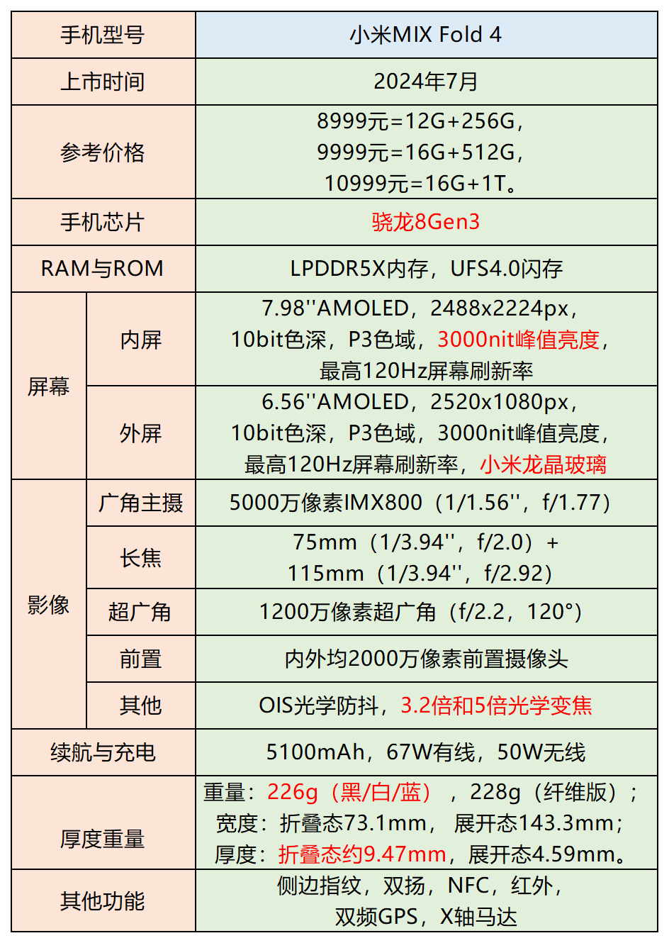 小米MIX Fold 4亮点: