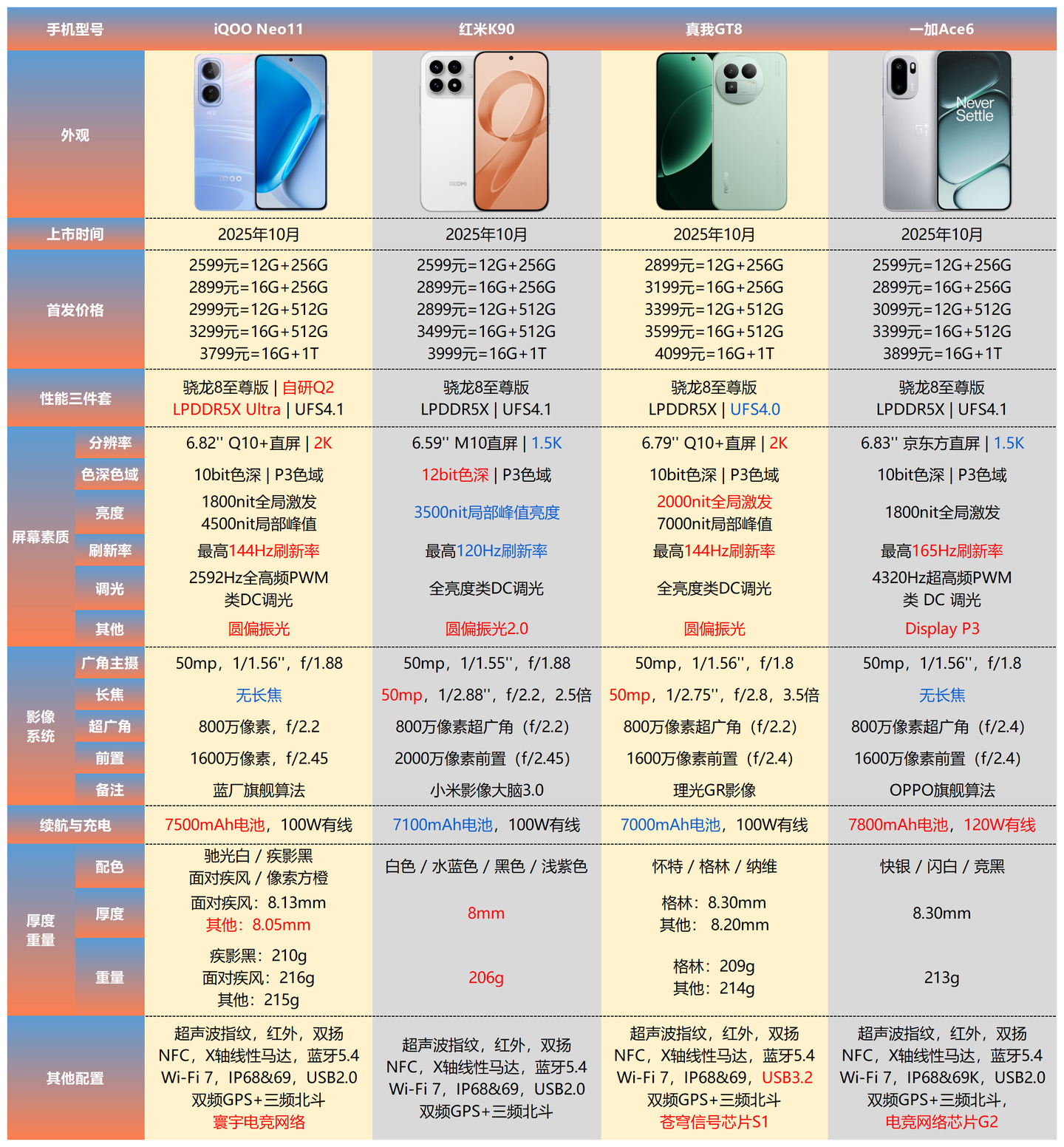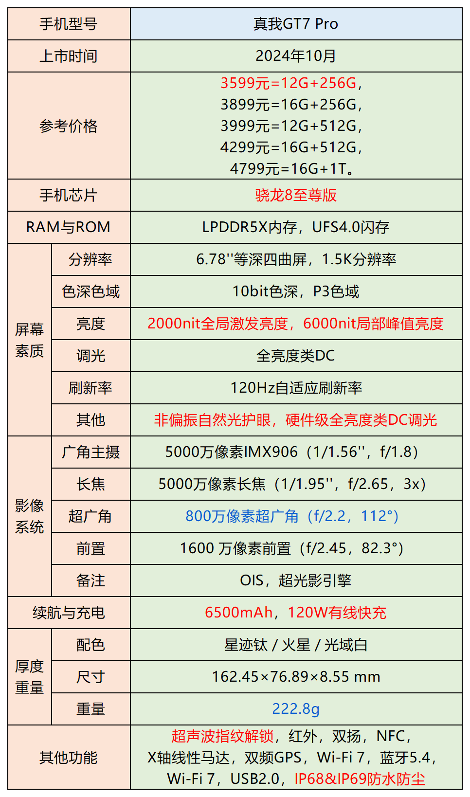 此外,GT8还拥有6.79英寸2K 144Hz高刷屏、7000mAh大电池配100W光速秒充以及IP68/IP69等高等级防护。综合来看,真我GT8无疑是比较全能的小旗舰了。中端四神机怎么选?一篇看懂⬇️