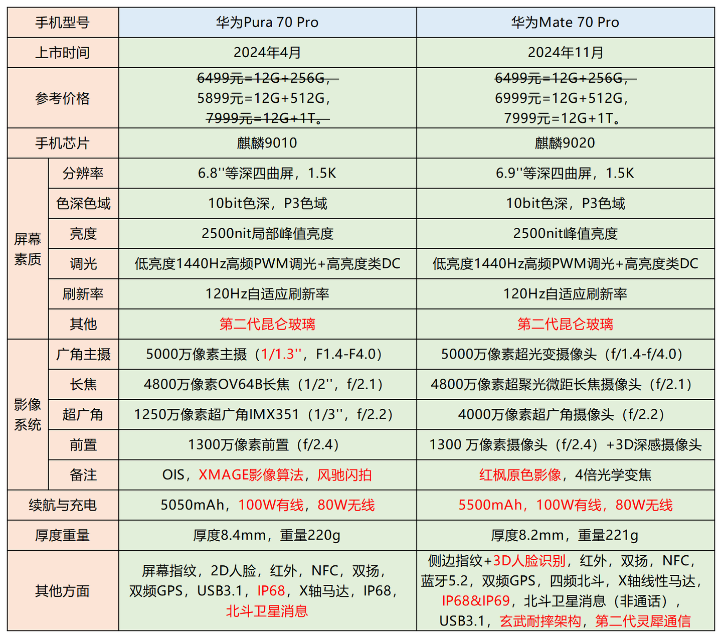 Pura70P和Mate70P区别:Mate70 Pro的芯片有所升级;续航提升;多了3D人脸识别。相对来说,Pura侧重拍照体验,Mate侧重商务使用。价格方面Pura也稍微便宜一些,可根据个人需求考虑。