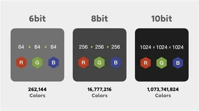 那么厂商宣传的8bit和10bit色深具体怎么换算?什么是10.7亿色?