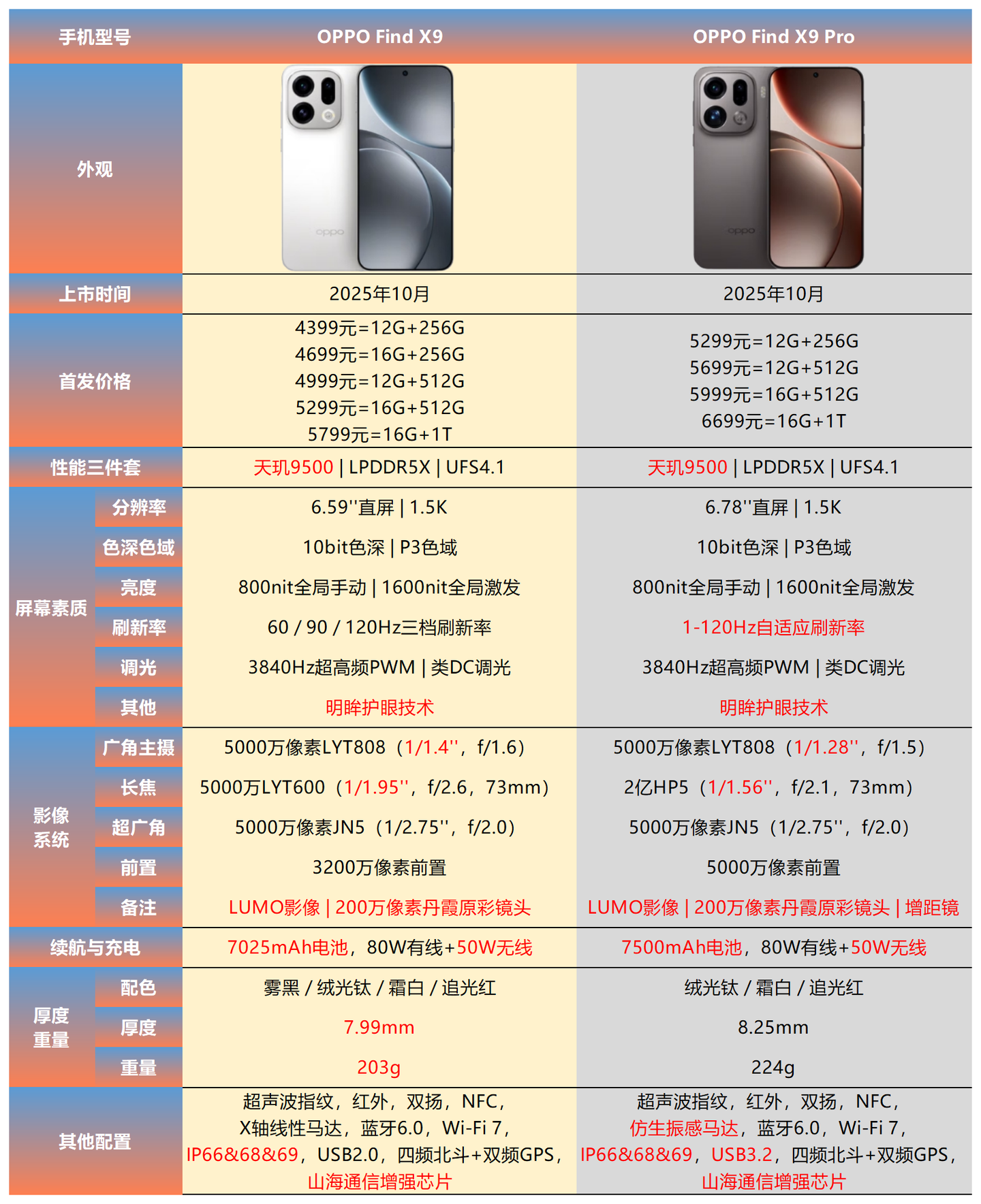 选购建议:Find X8 Ultra 也是2025年里的顶级影像旗舰之一,适合追求极致影像创作与高端体验 的用户。夜神五摄影像系统覆盖15mm-300mm全焦段,配合丹霞原彩镜头的分区色温感知技术,能精准还原夜景人像的肤色与环境氛围,直出无需修图的专业级作品,尤其适合演唱会拍摄、街拍等场景。 原彩ProXDR技术 首次完整呈现16-bit色彩与光子信息,搭配与小红书适配的HDR内容分享功能,让社交平台的影像呈现更具质感。若预算充足,推荐 16GB+512GB版本(6999元),兼顾性能与存储;普通用户可选择12GB+256GB版本(6499元)。预算紧缺也可以考虑Pro版。