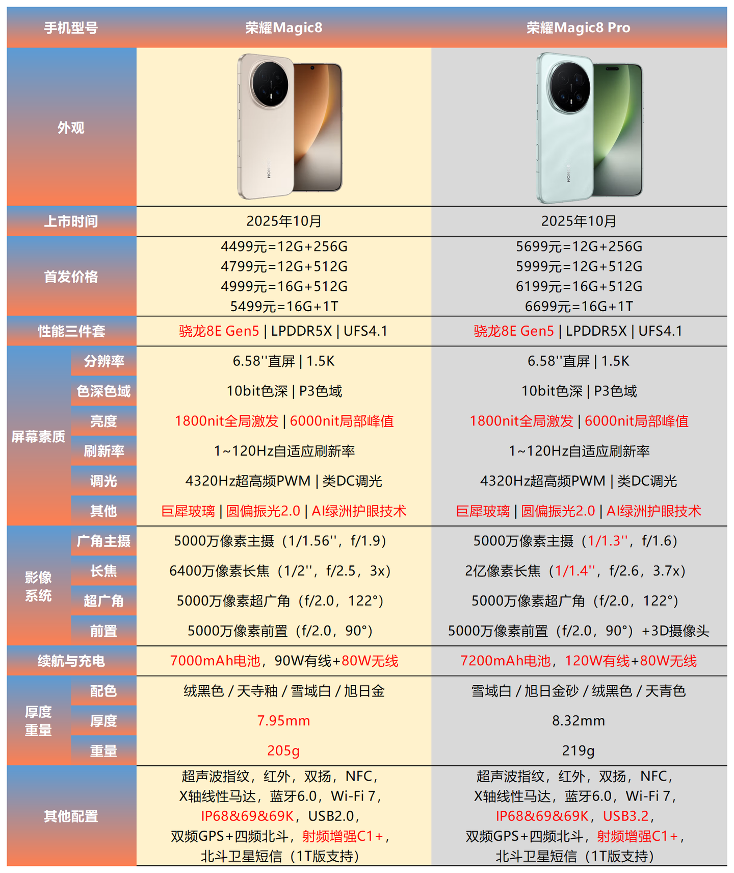 OPPO Find X9 Pro整体也很全能,色彩还原等方面给力。Magic8 Pro整体也比较全能,各项配置给的充足。