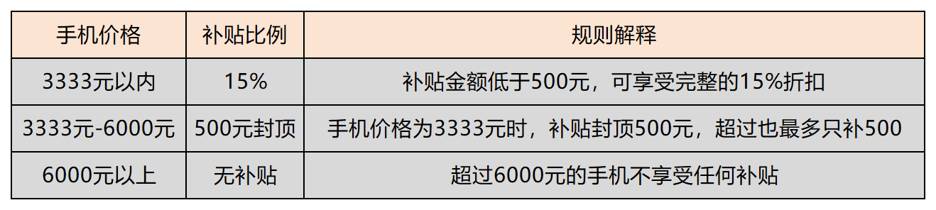 看不太懂也没关系,我制作了一个表,直接查看下表即可。目前看来,其实购买3000-4000价位的手机,性价比颇高。不到4000元就能买到不少512G的旗舰机了,当真很香。或者买2500到3500左右价位的手机,补贴后也非常香!