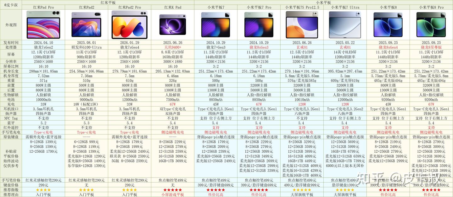 目前主要是小米平板8系列,相比上一代主要是处理器和电池常规升级。